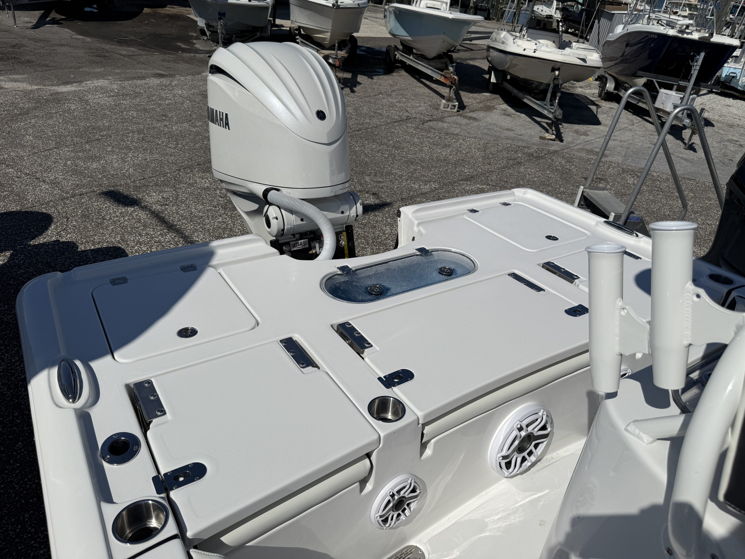 This Carolina Bay model provides customers with an efficient stepped bottom hull, large bow casting deck, dual livewells, and recessed bow seating. The 2500 Carolina Bay is the complete package for family and fishing. The ride and performance of this hull is unmatched by any 25ft. bay boat in the industry.